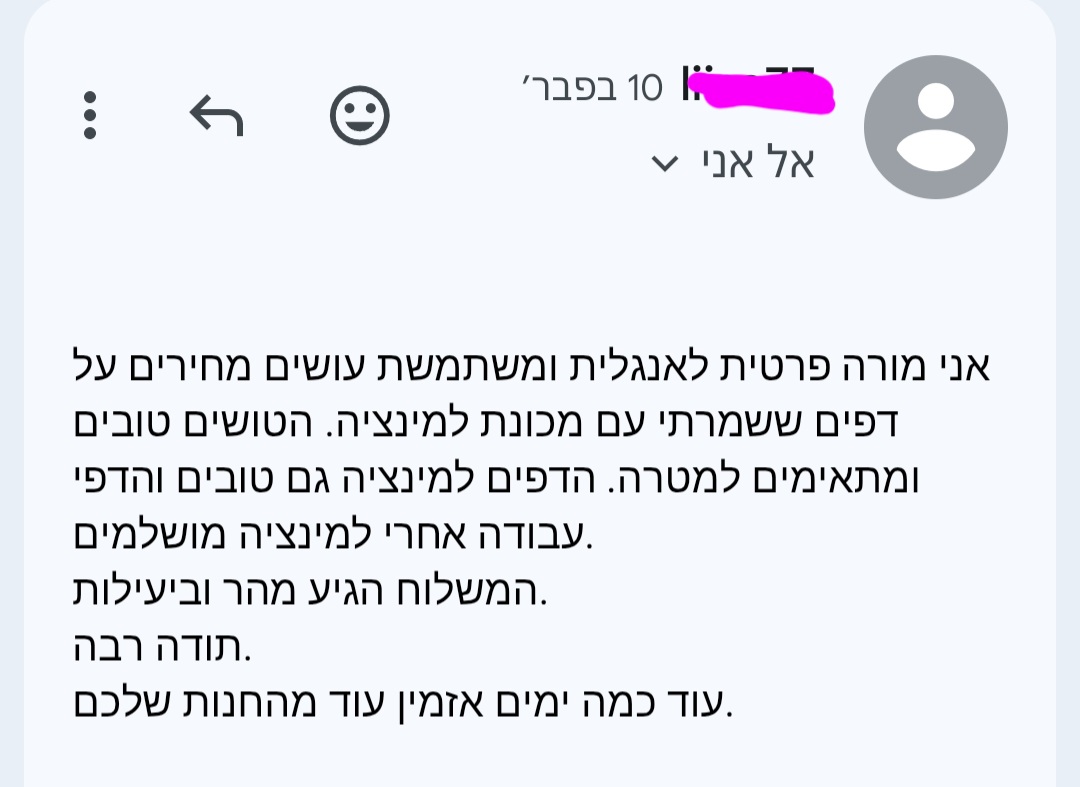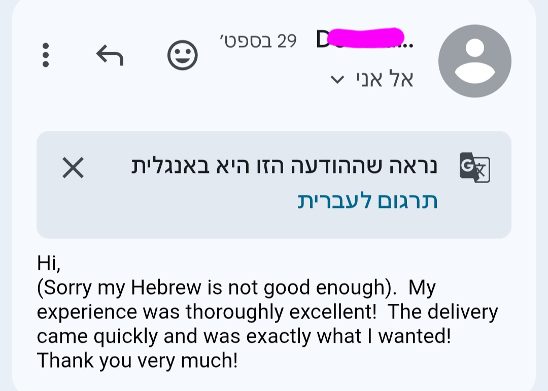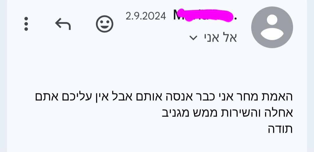 • יחס אישי וחיוך אמיתי מכל הלב.